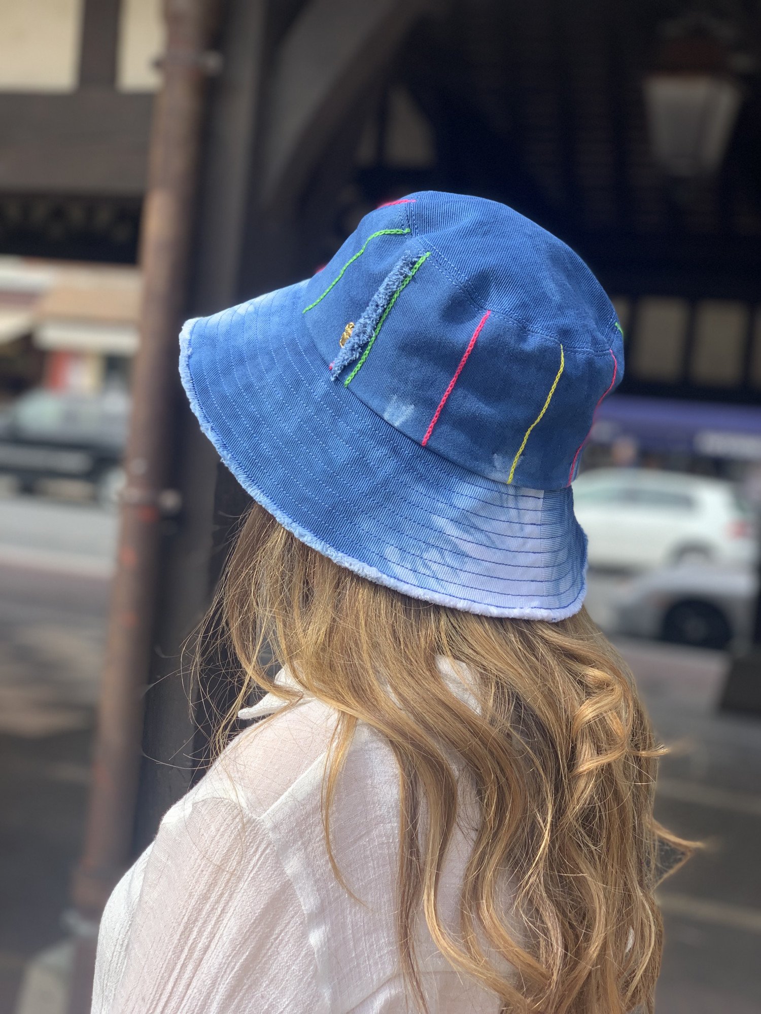 Le premier bob chez CLARIS VIROT ,fabriqué à base de denim indigo, inspiré des tissus maliens. Avec toujours le petit scarabée doré.
