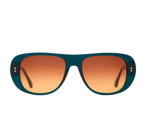 Affirmez votre style avec les lunettes de soleil Madura Bleu Canard. Leur monture élégante et audacieuse en bleu profond contraste avec des verres dégradés ambrés, offrant une touche de caractère unique. Les trois rivets dorés ajoutent une finition subtile et raffinée.