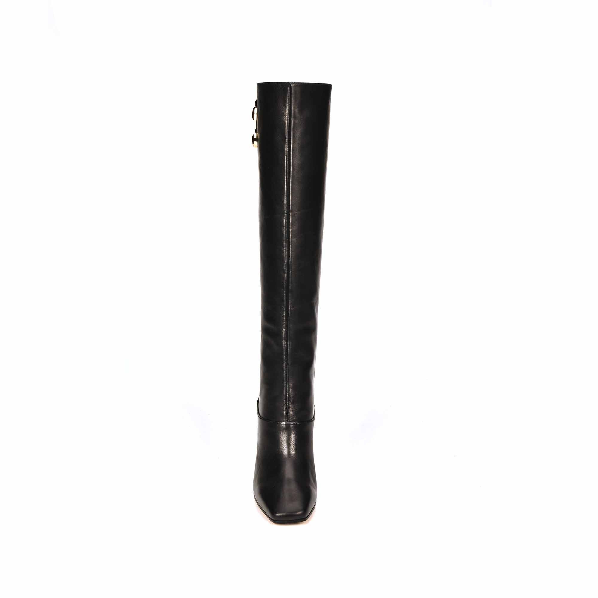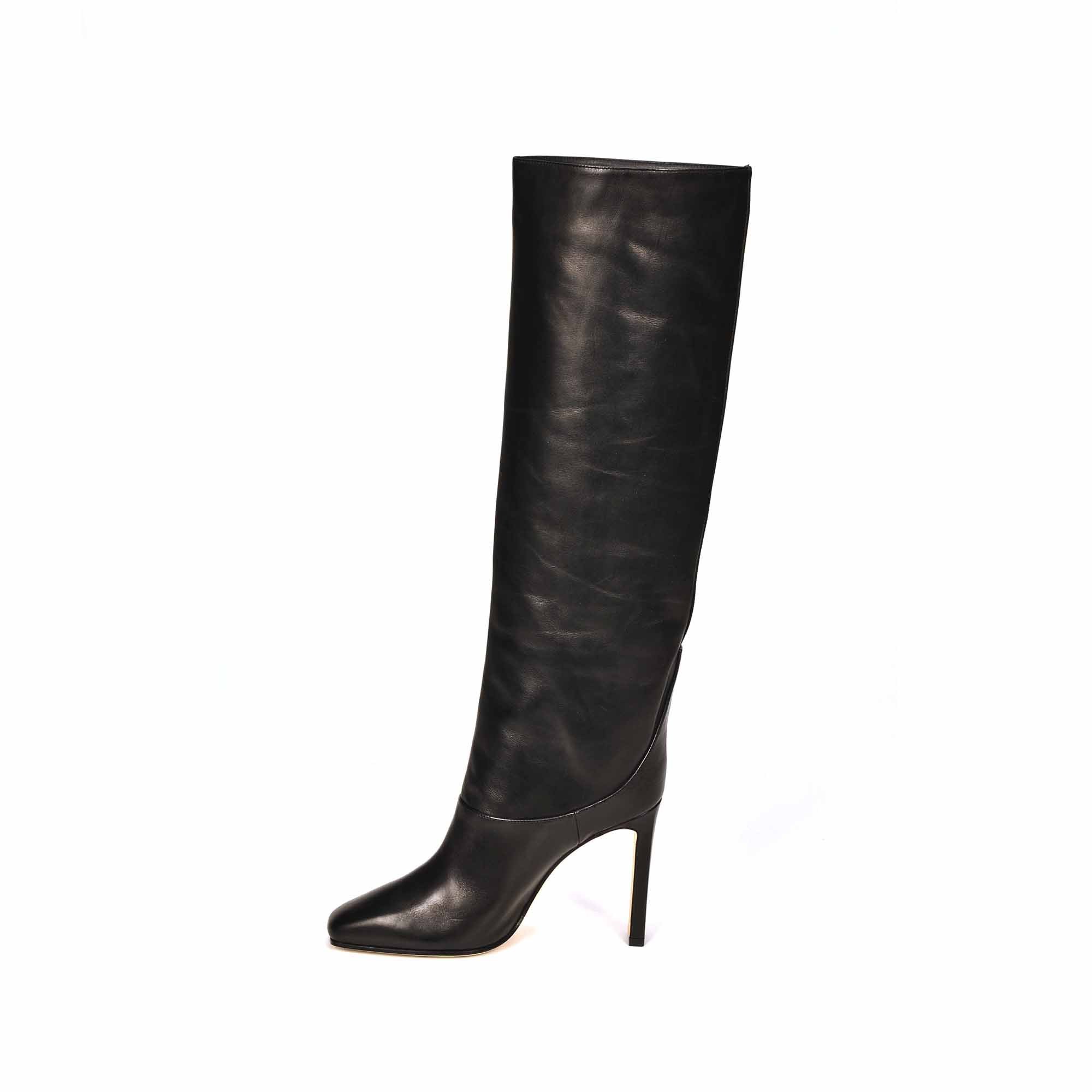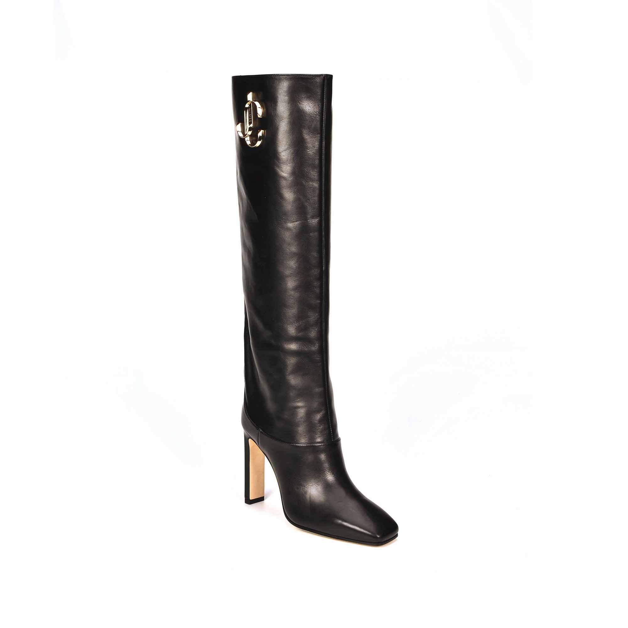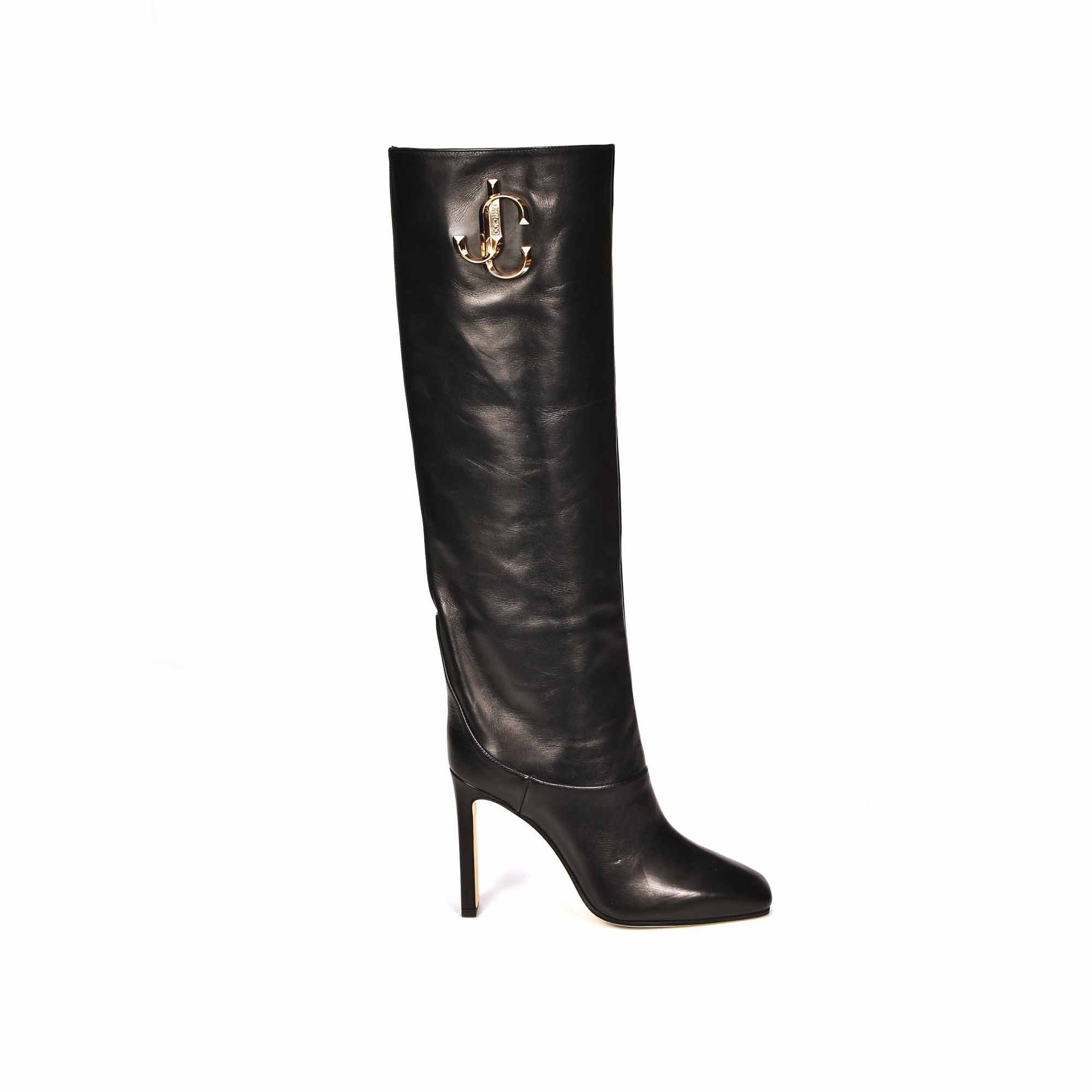 Soyez séduisante et élégante aves les bottes hautes MAHESA Jimmy CHOO en cuir noir. Sur un talon de 100 mn vous aurez la cambrure parfaite. Son logo doré apporte du chic à cette magnifique botte.