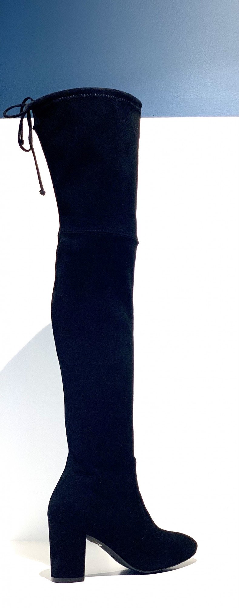 Les cuissardes à talon Suzanna en cuir strech velours noir de chez Stuart Weitzman sont un intemporel dans votre garde robe. Le velours strech les rend particulièrement souples et confortables tout en rappelant leur allure cavalière. Le détail couture à l'arrière permet de porter ces cuissardes avec une robe, une jupe ou encore un jegging.