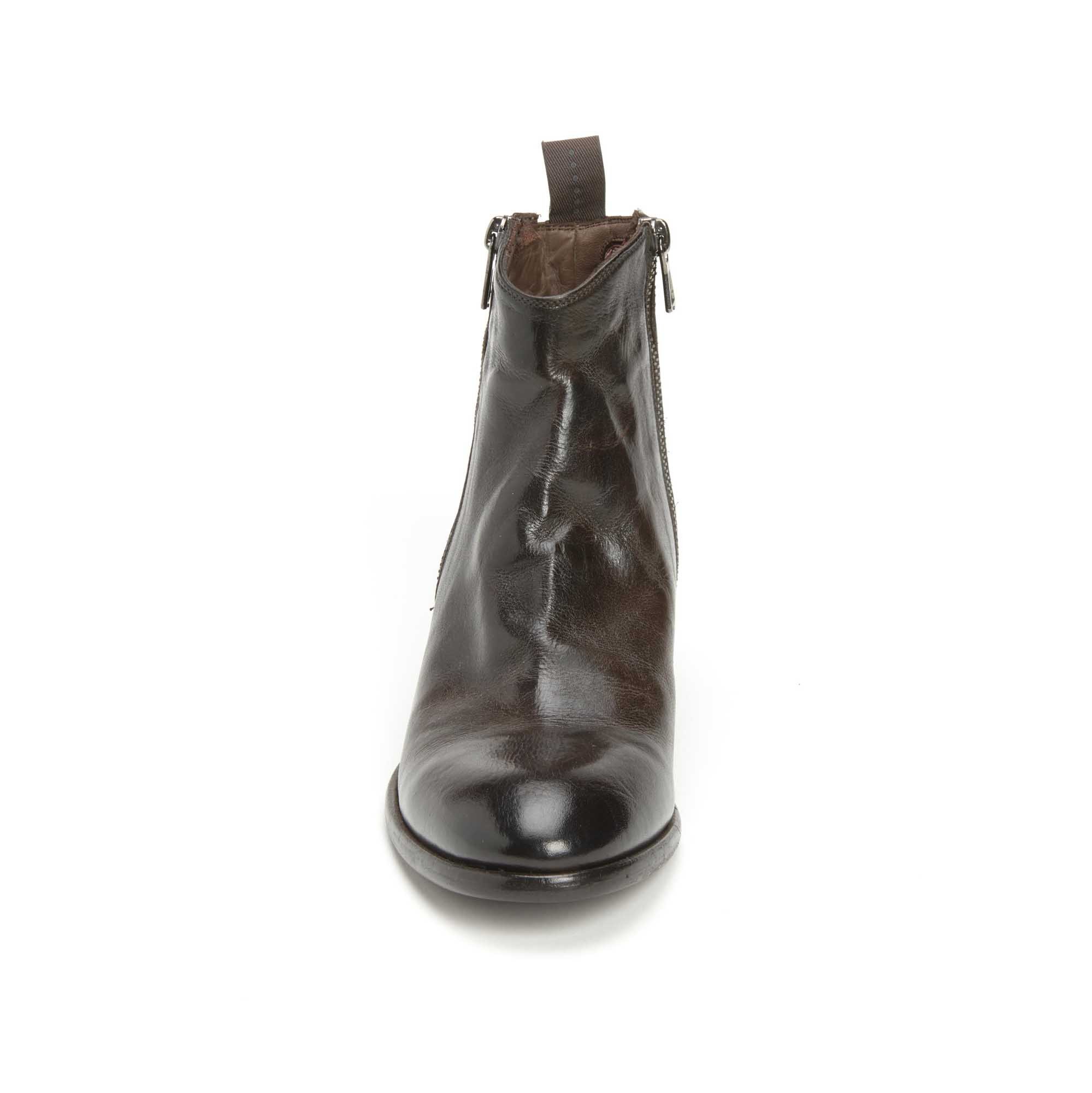 Les boots marron foncés double zip de chez Sturlini sont fabriquées à la main. Trempées dans la teinture, le cuir extra-souple obtient cette couleur marron profond. Ces chaussures avec un talon de 45 mn sont réputées pour leur confort et leur matière noble. C'est la fabrication artisanale qui leur permet d'être extra-flexibles. Ces boots s'adaptent particulièrement à un style casual-chic.
