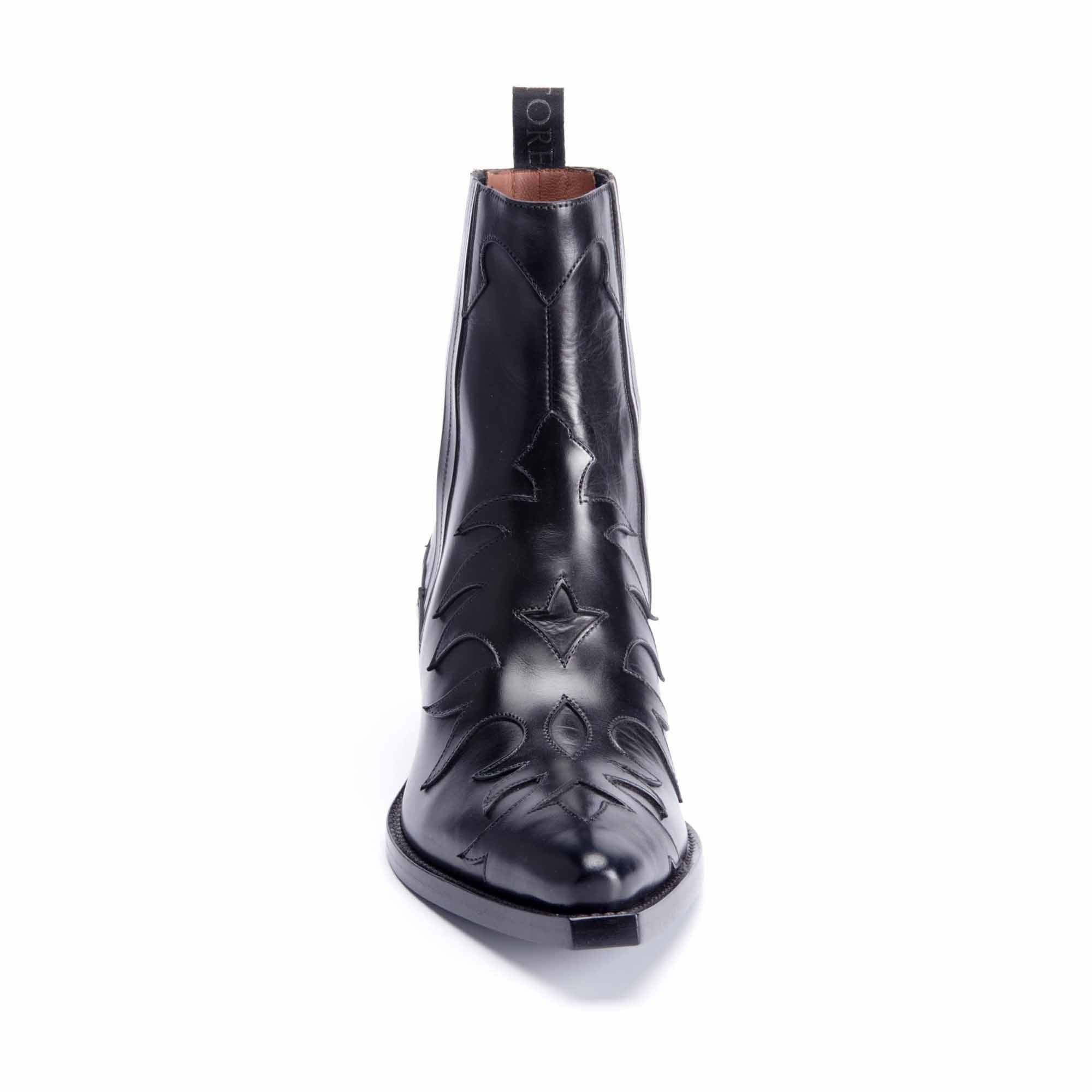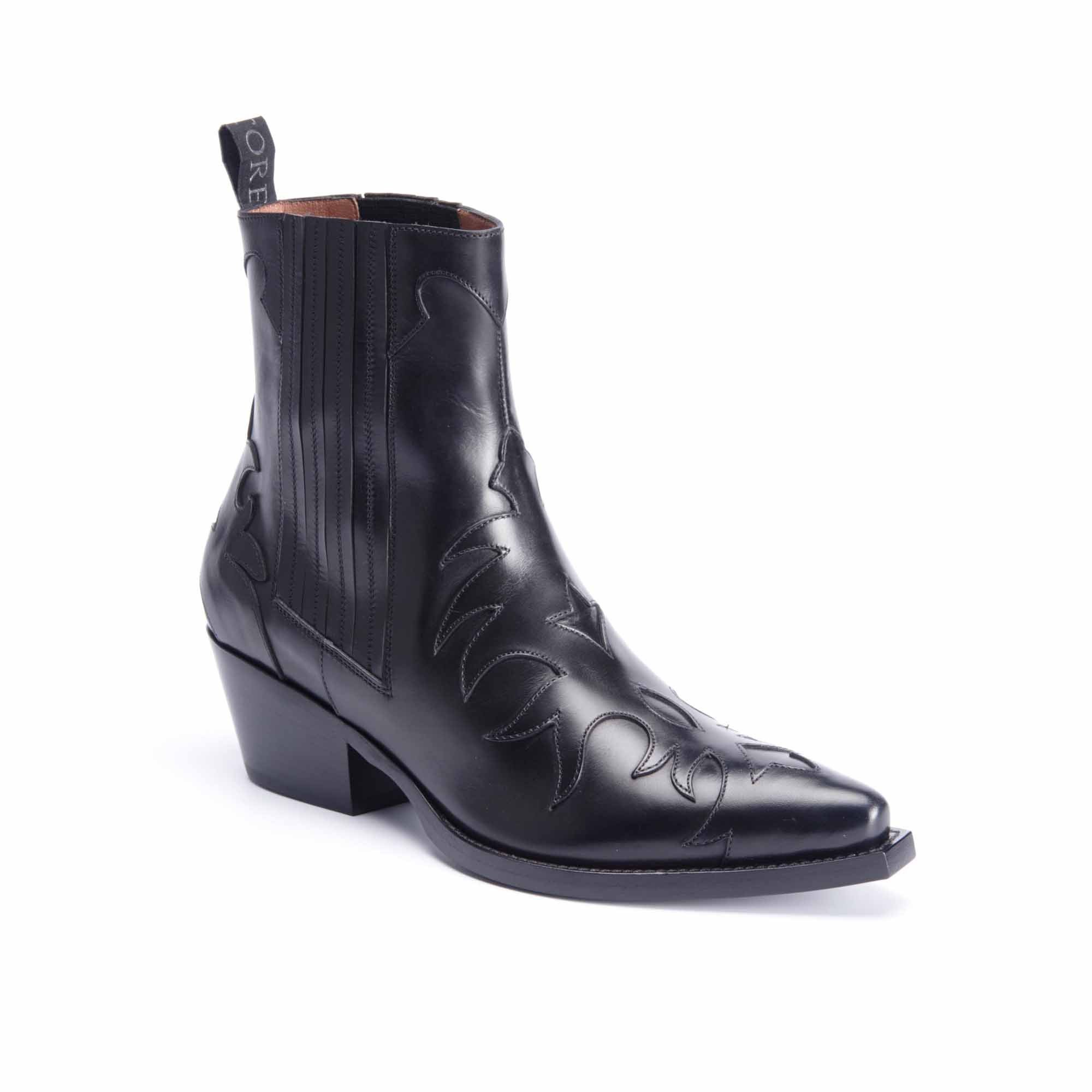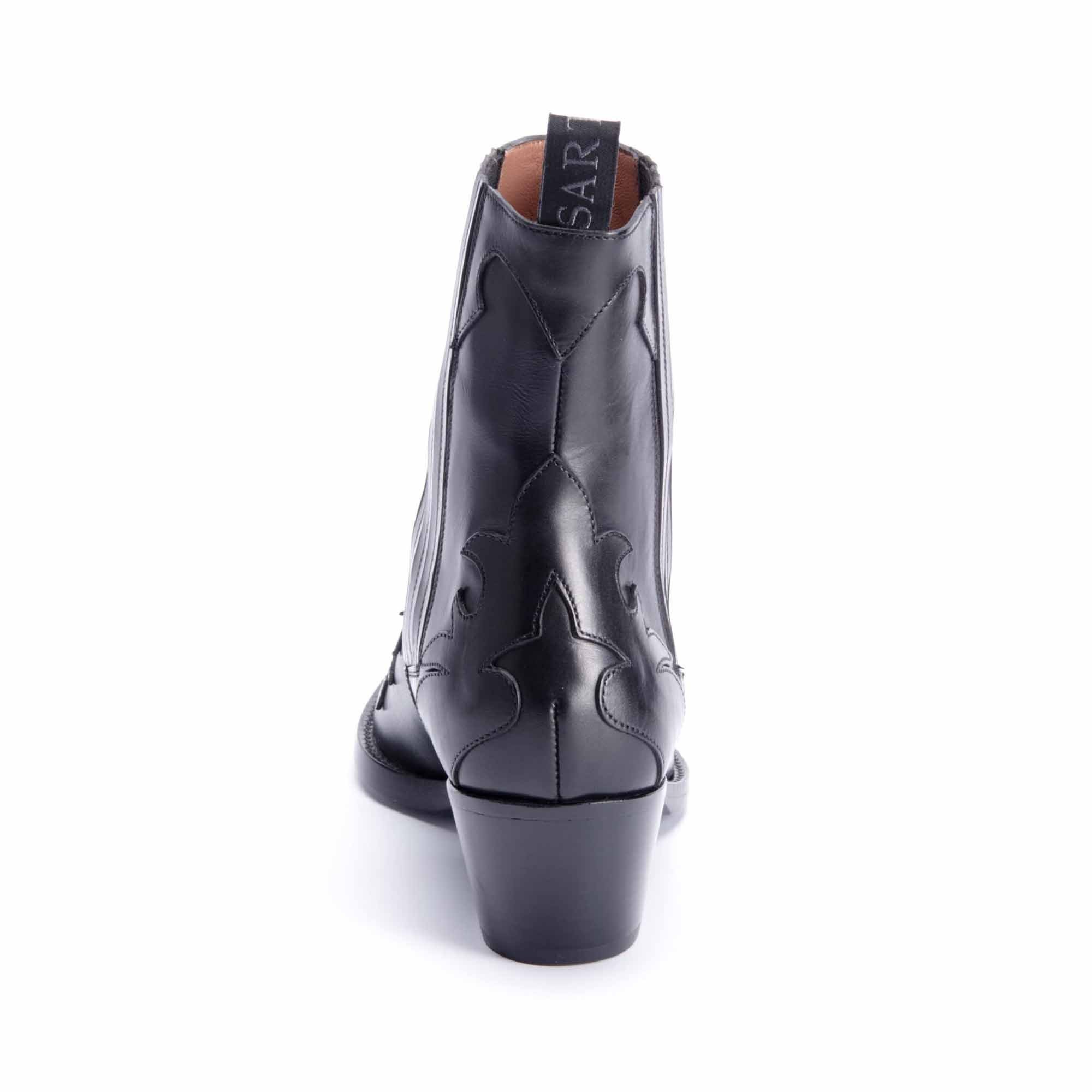 BOOTS western flamme SR3652 Sartore iconique en Veau NOIR. Ces jolis contrastes sont accompagnés de découpes flamme. Le talon biseauté de 4,5 cm et ses élastiques latéraux assurent un véritable confort