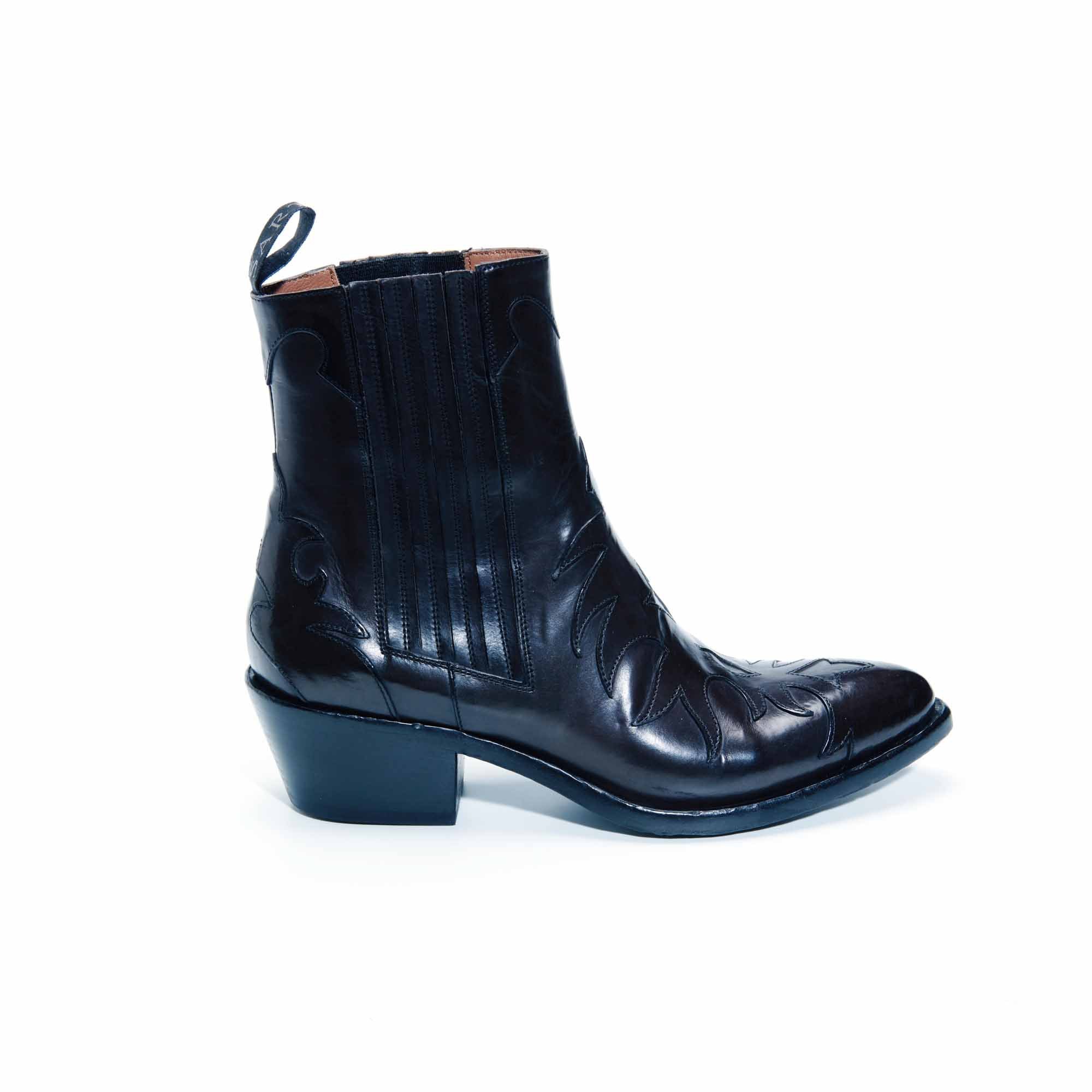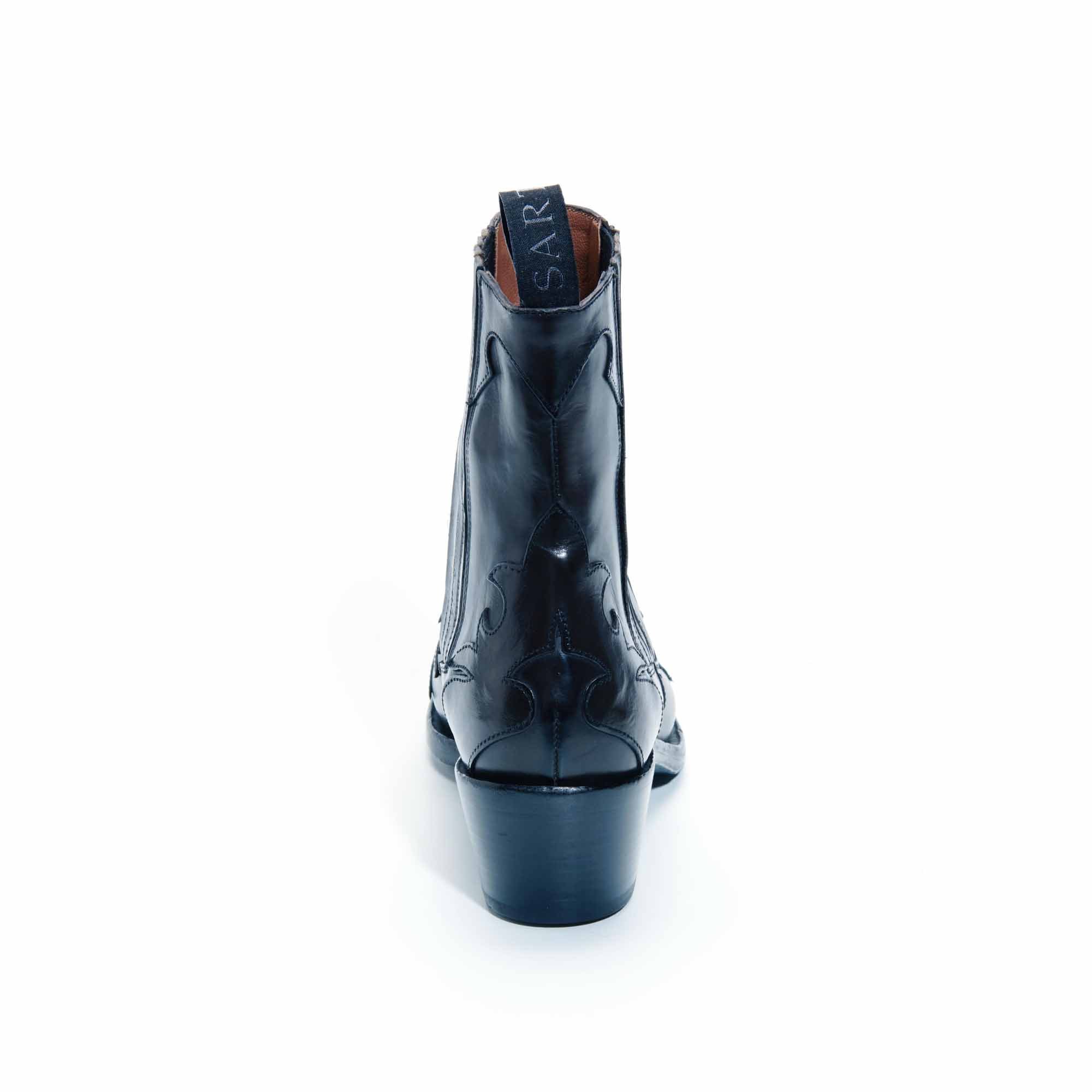 BOOTS western flamme SR3645S Sartore iconique en VEAU CARBONE. Ces jolis contrastes sont accompagnés de découpes flamme. Le talon biseauté de 4,5 cm et ses élastiques latéraux assurent un véritable confort