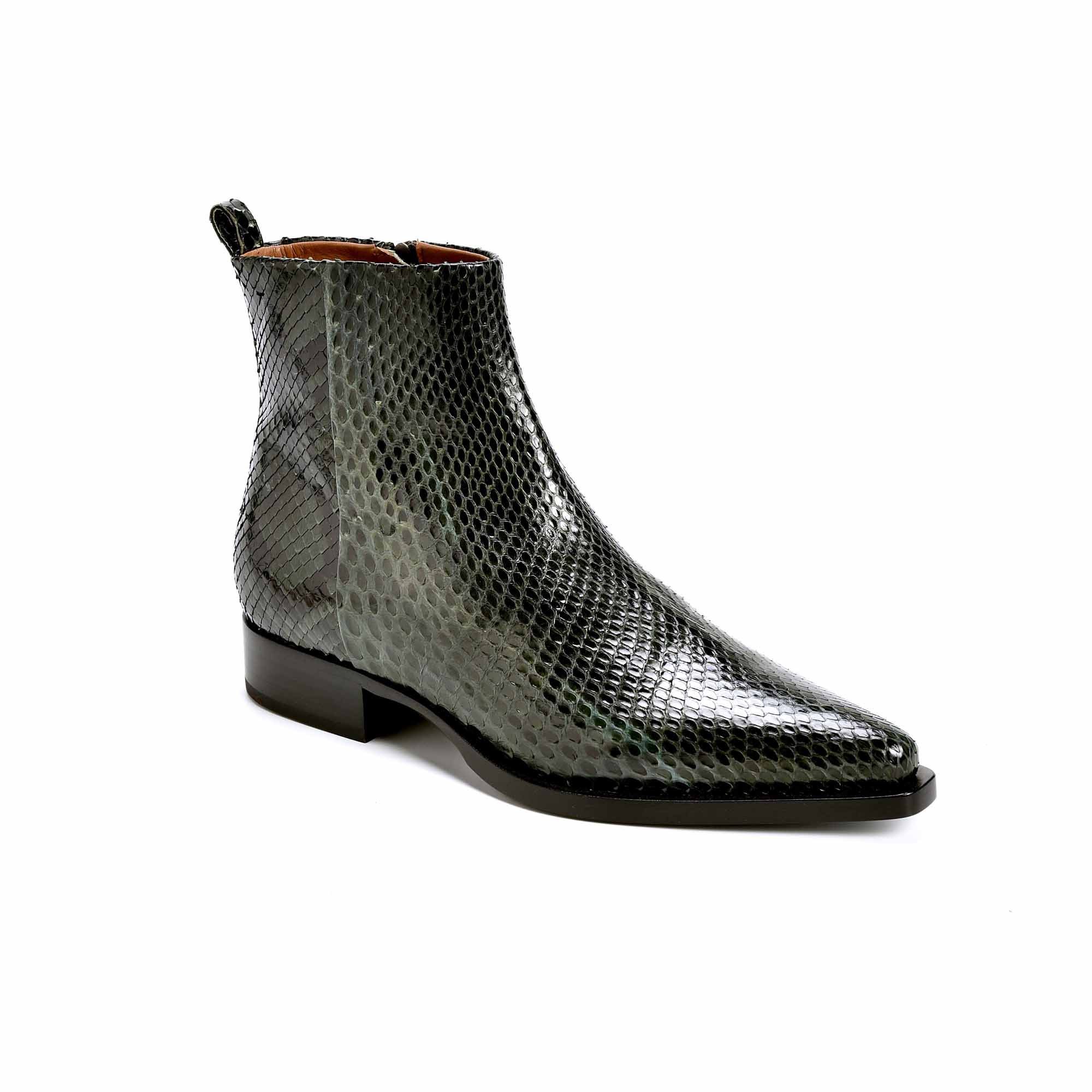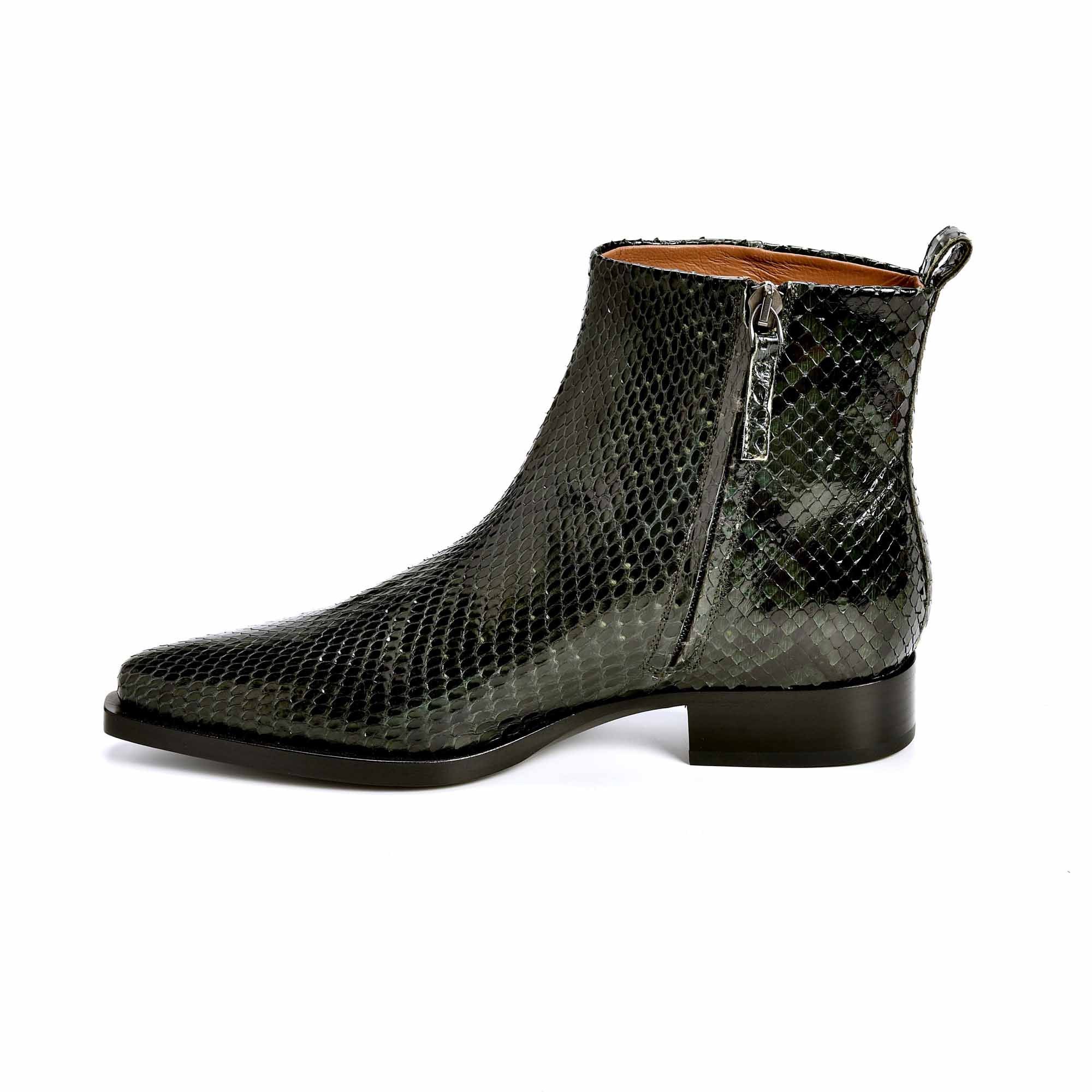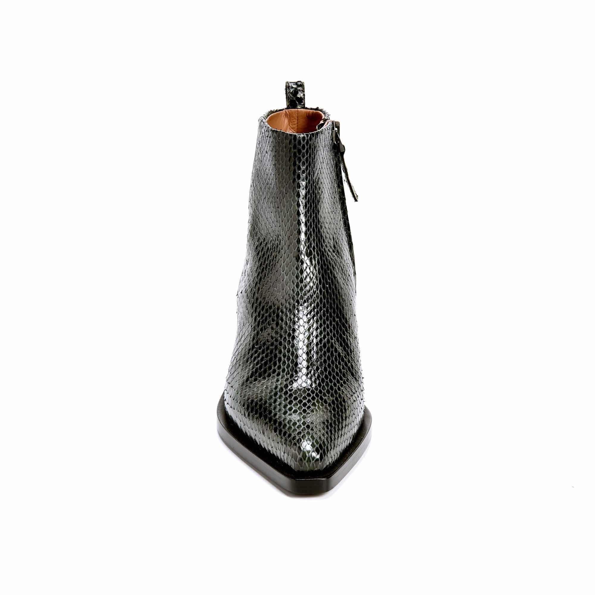 Boots western iconique en cuir de veau lavé qui donne un aspect vintage. D’un joli colori vert noir, ces boots sont dotées d'un talon droit de 3 cm et ses élastiques latéraux assurent un véritable confort