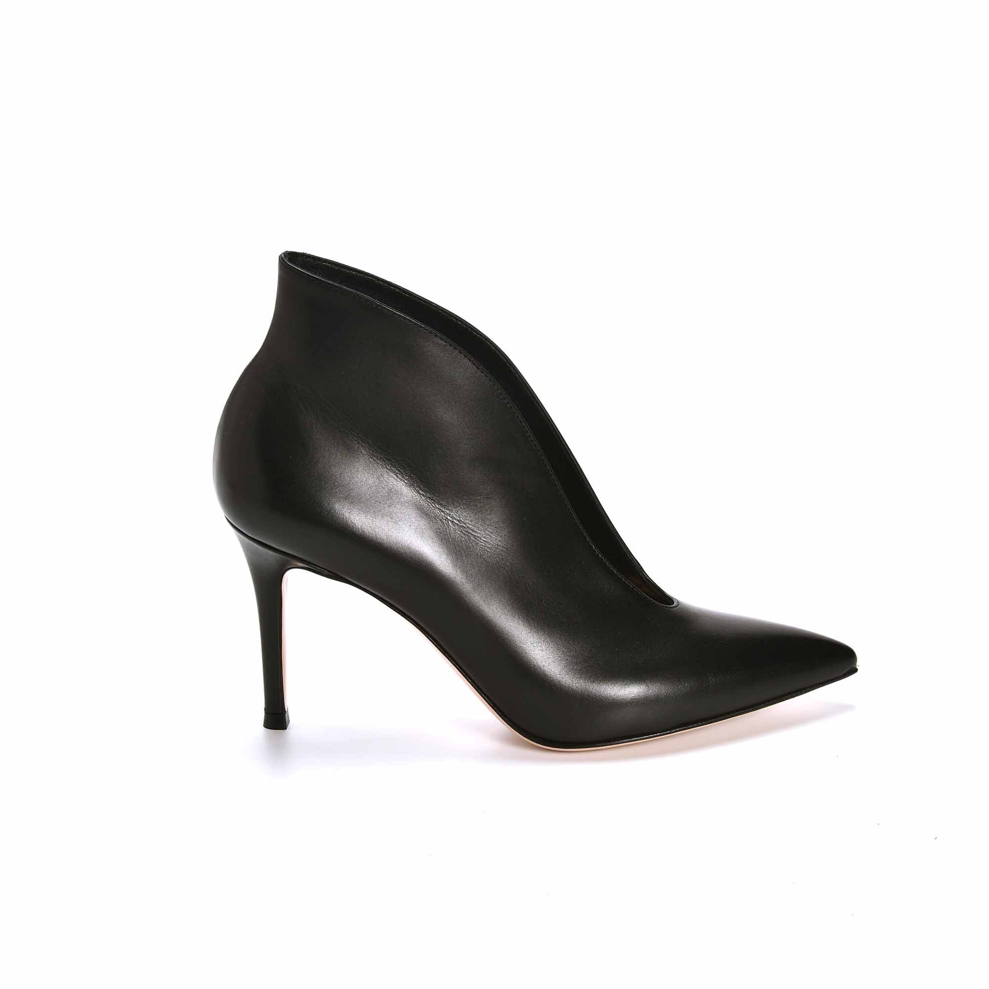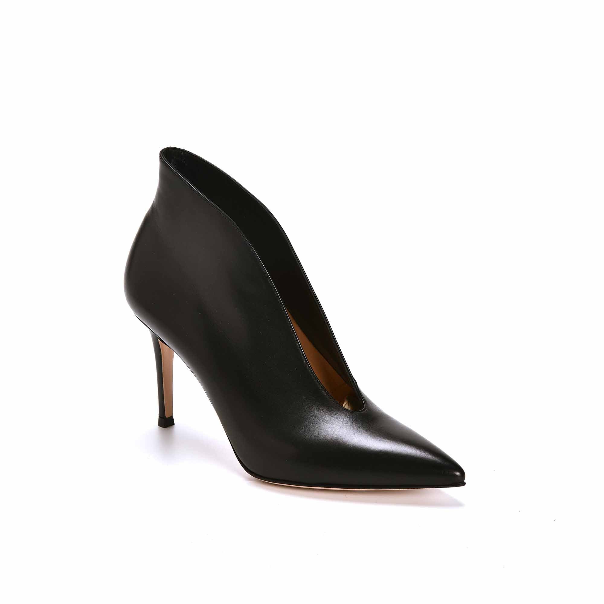 Avec un bout pointu, les boots Vania en cuir noir de chez Gianvito Rossi sont la signature de la marque. Avec un décolleté sur le devant, révélez votre sensualité, tout en étant élégante. Très couture, ces boots ont un
