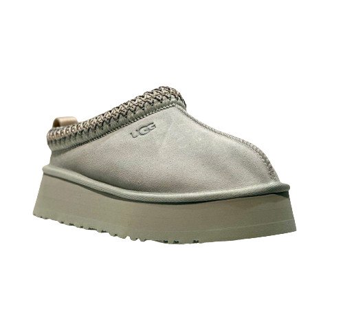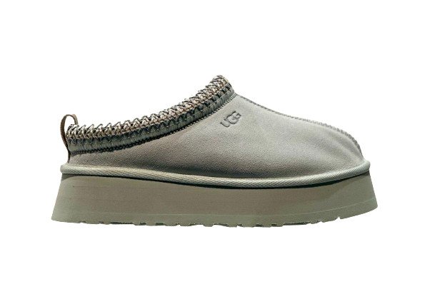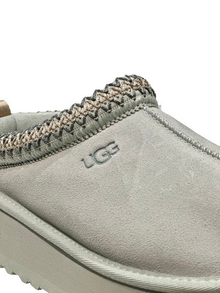 Tournez-vous vers les TAZZ GOOSE de la célèbre maison UGG. Elle présente une empeigne en daim de couleur bleu gris, agrémentée d'une tresse assortie en polyester recyclé. Une couture en relief traverse l'avant du pied, ajoutant du relief et du caractère à la chaussure. La doublure est réalisée en UGGPLUSH, une laine recyclée, et la semelle compensée de 3,8 cm en mousse EVA garantit un confort optimal.