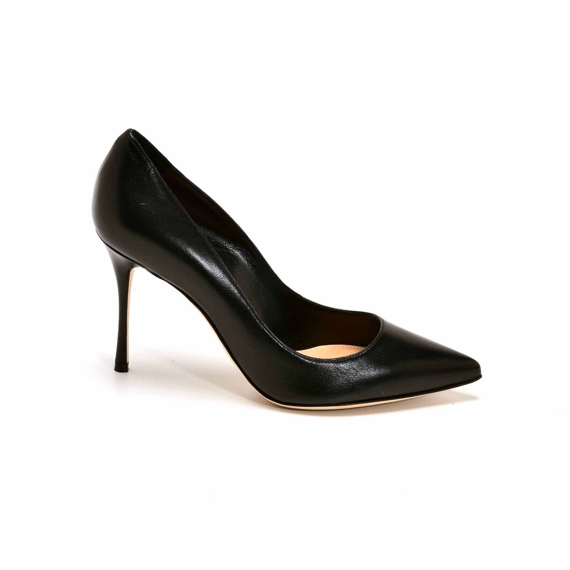 Modèle cuir noir pour l’indémodable escarpin Godiva à bout pointu réalisé en cuir souple, pour un mariage parfait entre féminité et élégance.