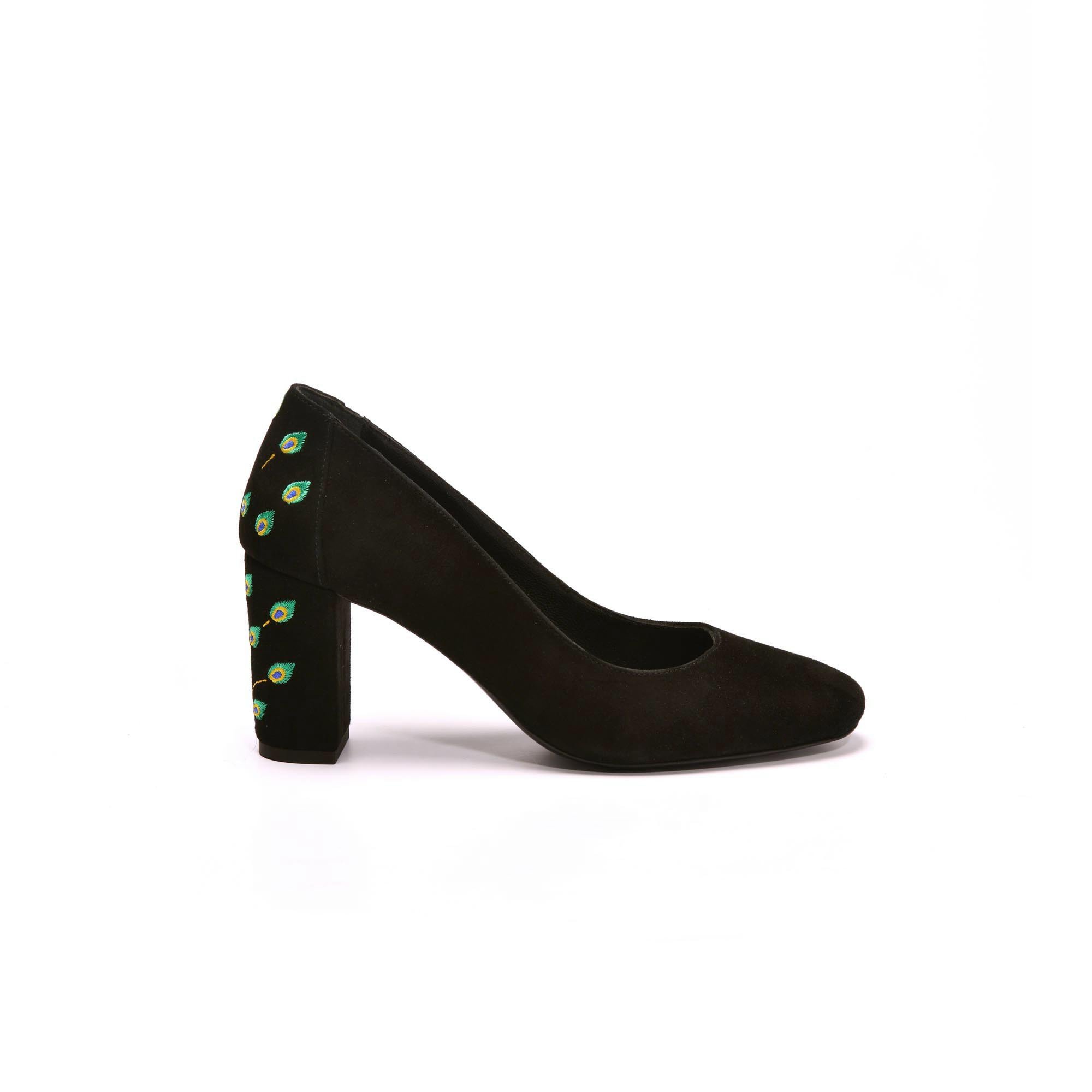 - Escarpin avec talon brodé paon