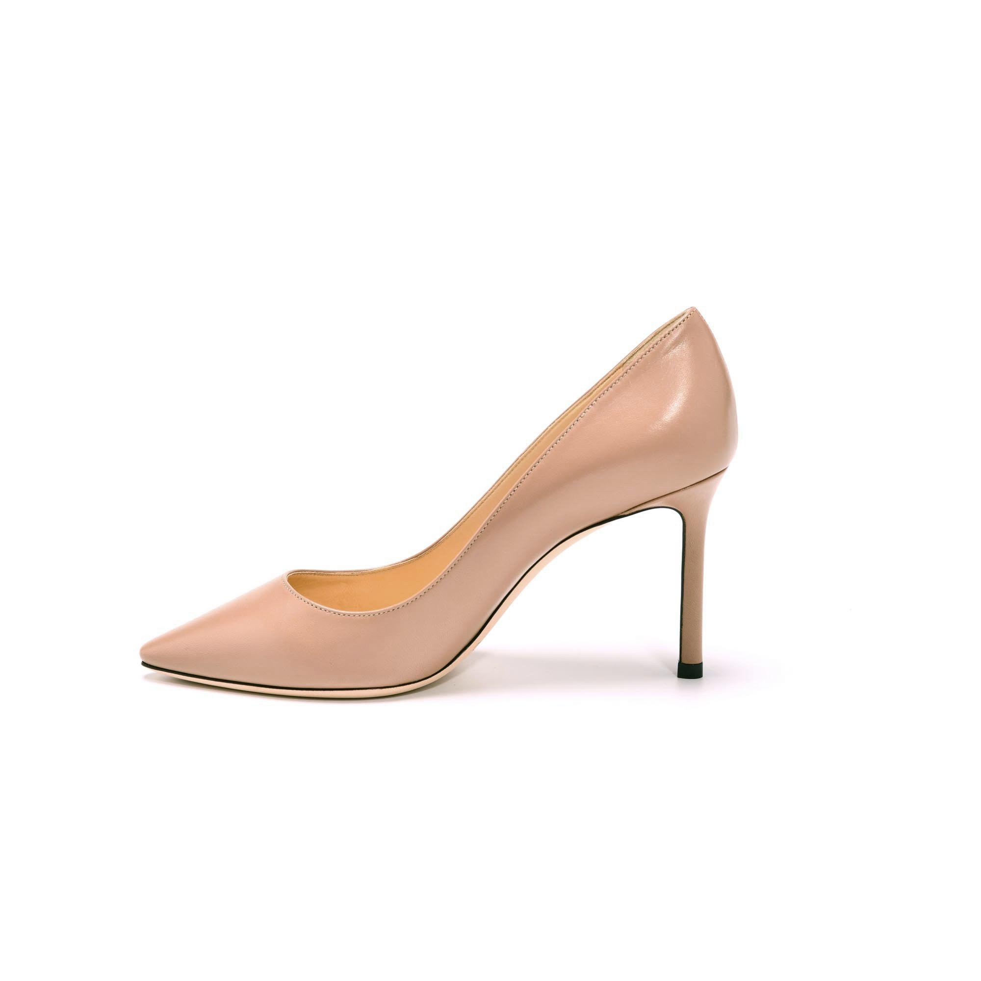 L'escarpin Romy en veau nude Jimmy Choo est une revisite de l'escarpin classique avec une pointe plus douce ainsi qu'un nouveau talon aiguille de 8.5 cm. Le talon de 8.5 cm est un allié pour toutes les femmes qui veulent être sexy et confortable dans leurs talons. Un incontournable !