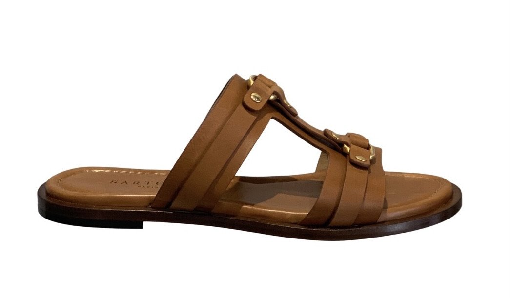 La Mule plate en cuir de veau cognac SARTORE ornée de jolies boucles donne une élégance assurée. Le cuir de veau d'extrême qualité renforce l'allure chic Sartore