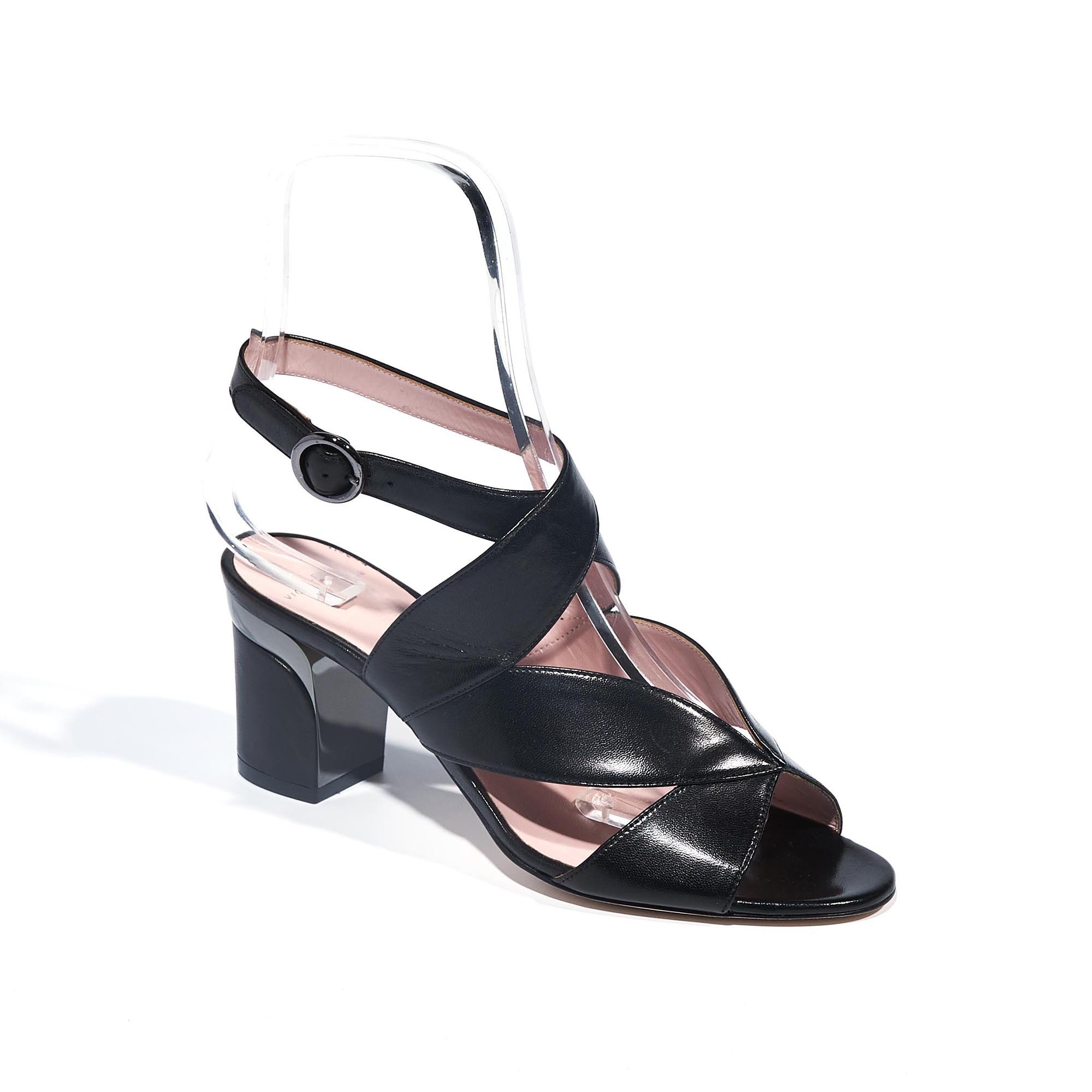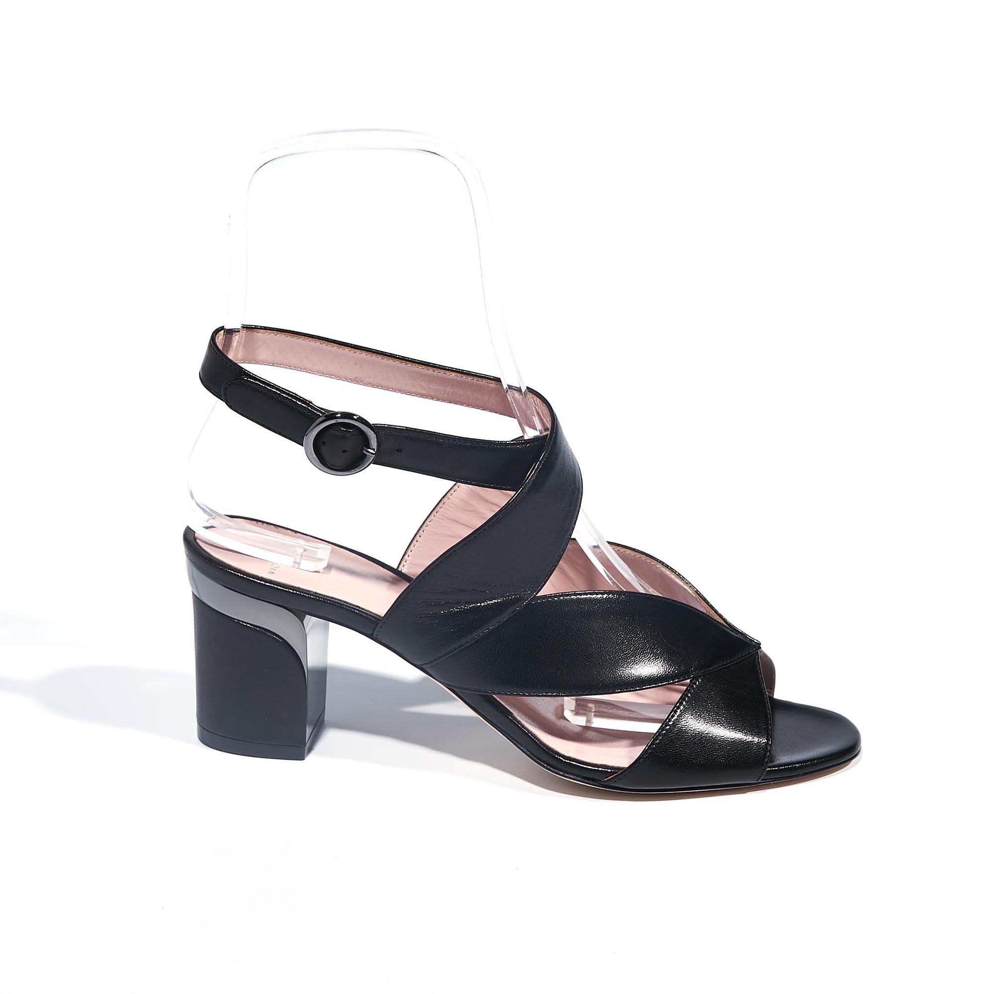 Découvrez les sandales Violet Tomas Brume en cuir noir. Création douce et élégante, talon recouvert en nappa avec détail argenté. Fermez-les sur le côté de la cheville grâce à la bride à boucle qui passe derrière le talon.Talon noir détail argent d'une hauteur de 5.5 cm et bout ouvert en amande.