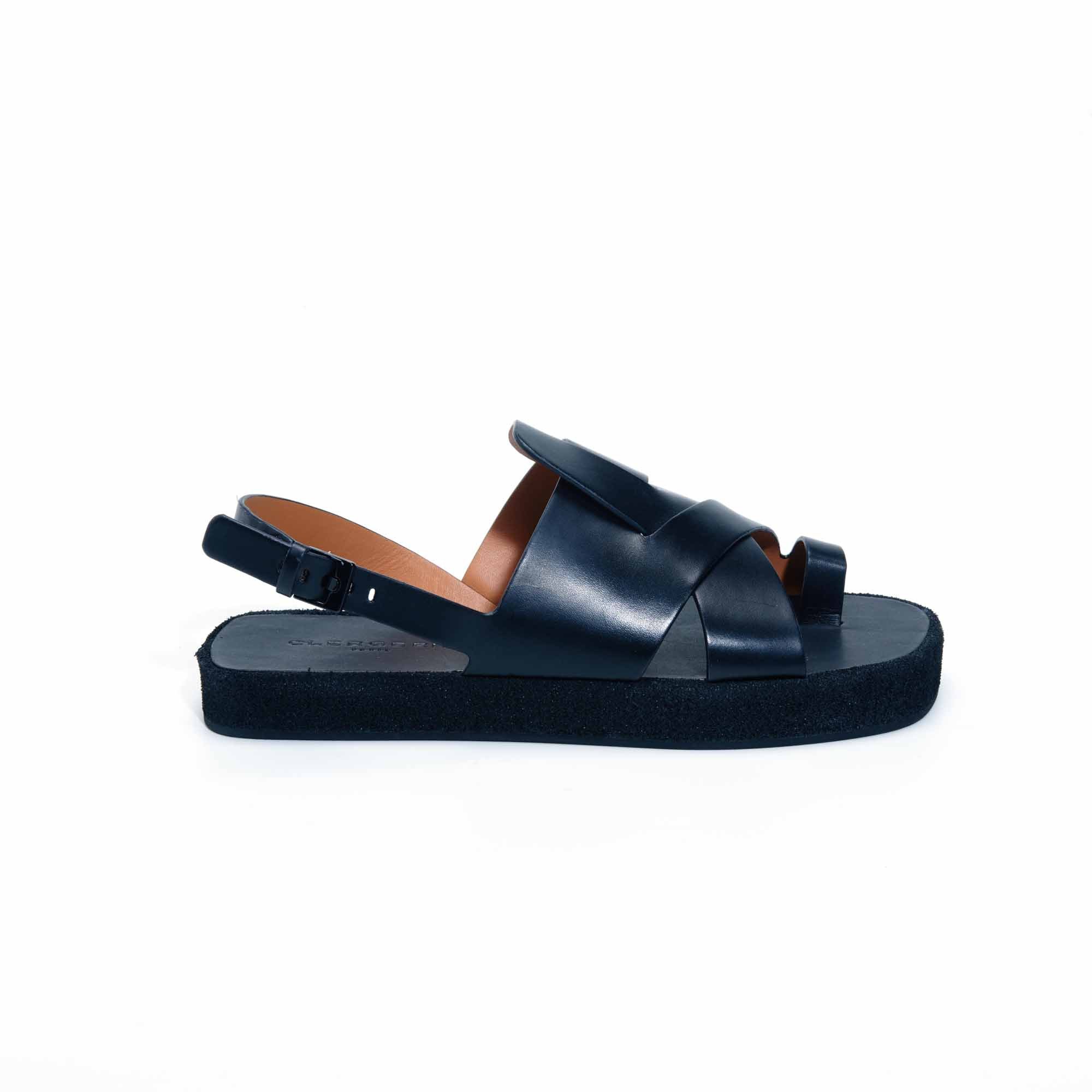 La Sandale GRETA est un entre doigt CLERGERIE en cuir de veau noir. Elle est accompagné de sa semelle ultra légère en micro fibre de 25 mn qui donne un résultat très graphique.