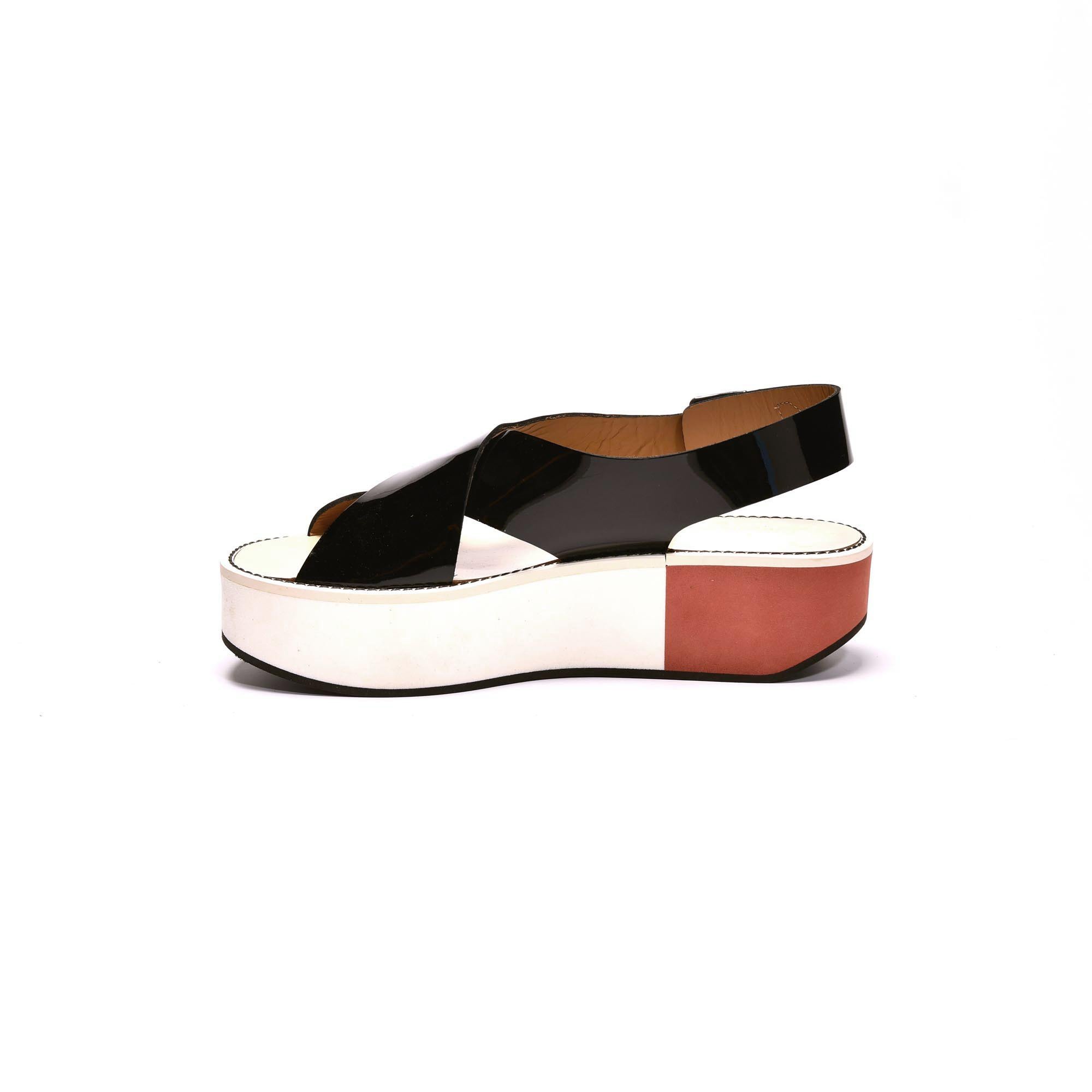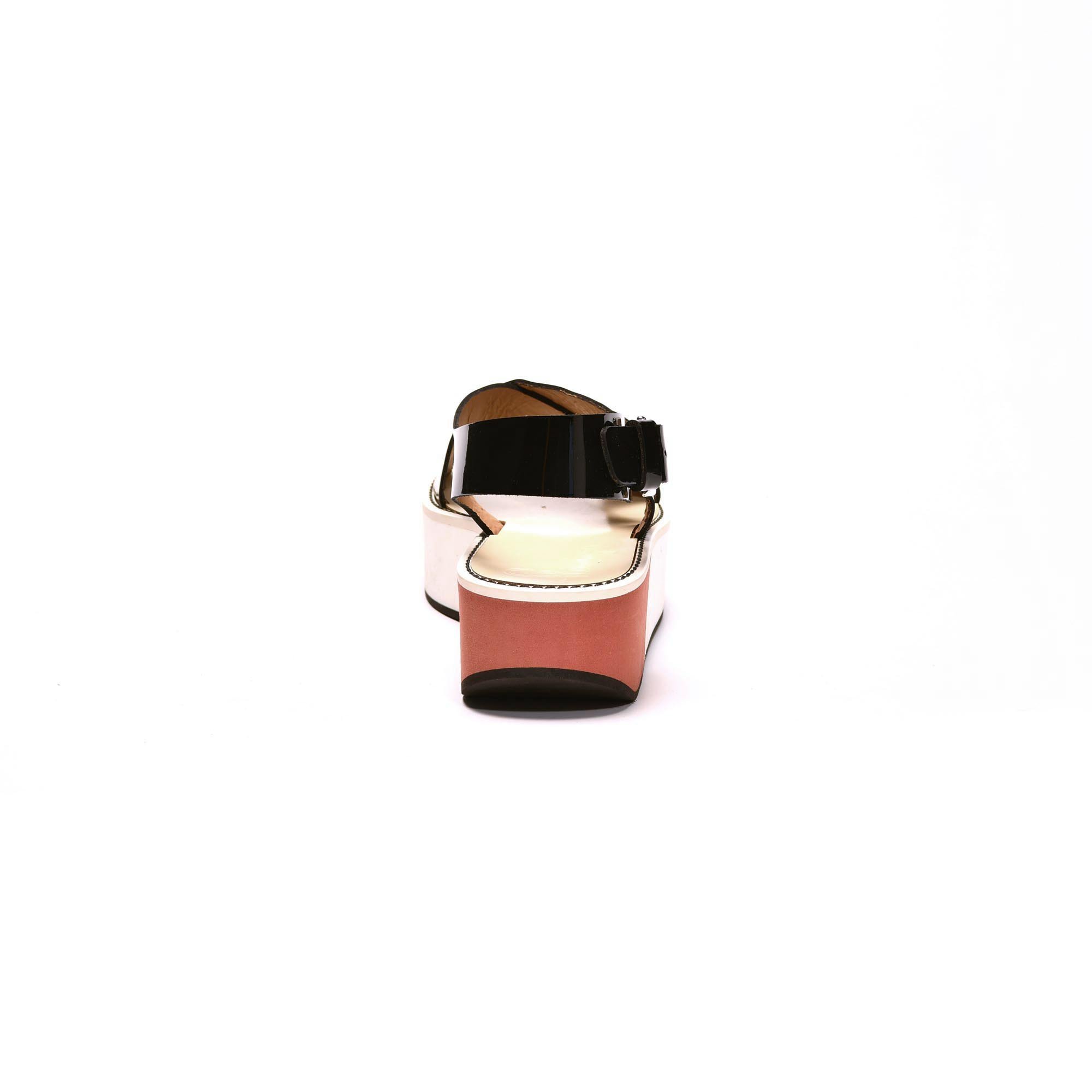 Adoptez les sandales Malabis Flamingos aux brides vernies noir. Portez-les avec toute tenue décontractée. Appréciez la touche d'originalité avec la semelle blanche et rouge. Fermeture par boucle. Ces sandales sont ultra légère avec leur semelle compensée de 3 cm.