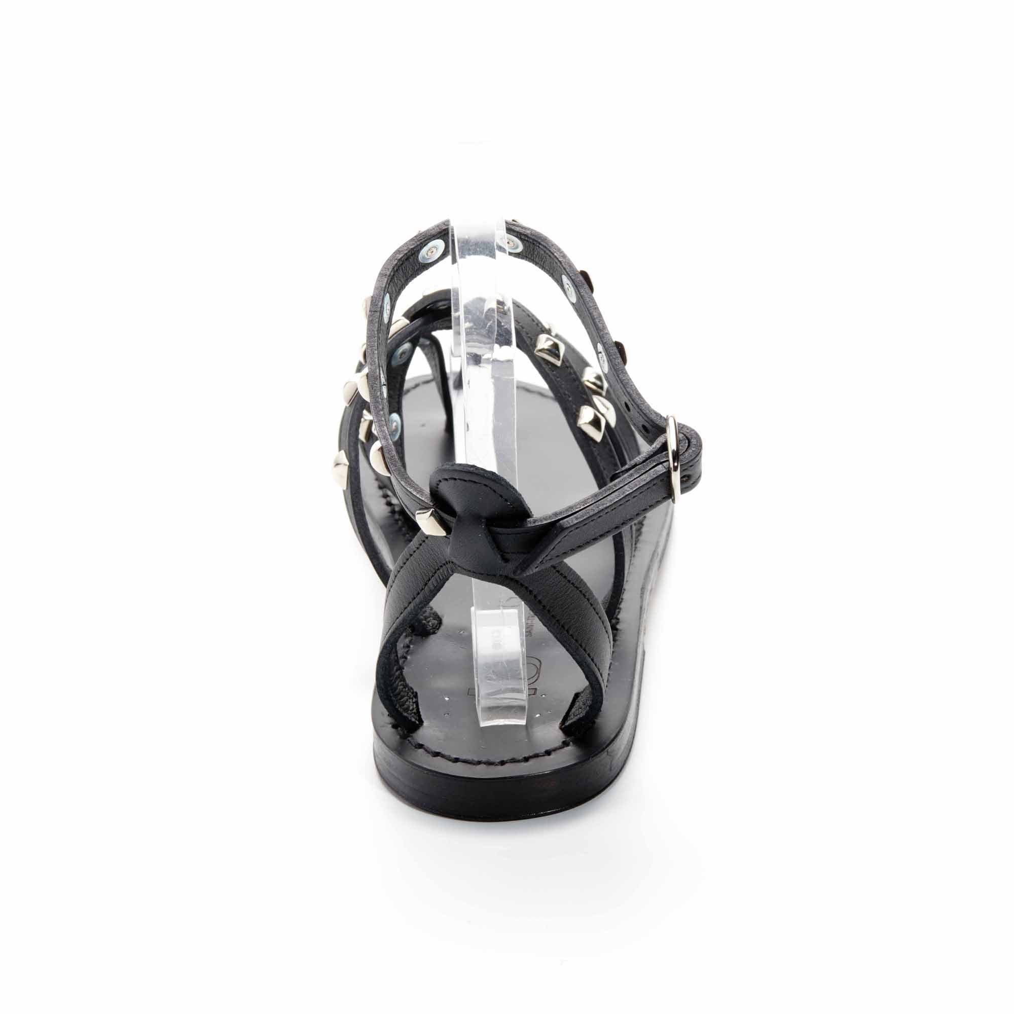 Incontournable sandale d'été, laissez vous séduire par les sandales EPICURE noir, semelle noire et clous argentés K.Jacques.