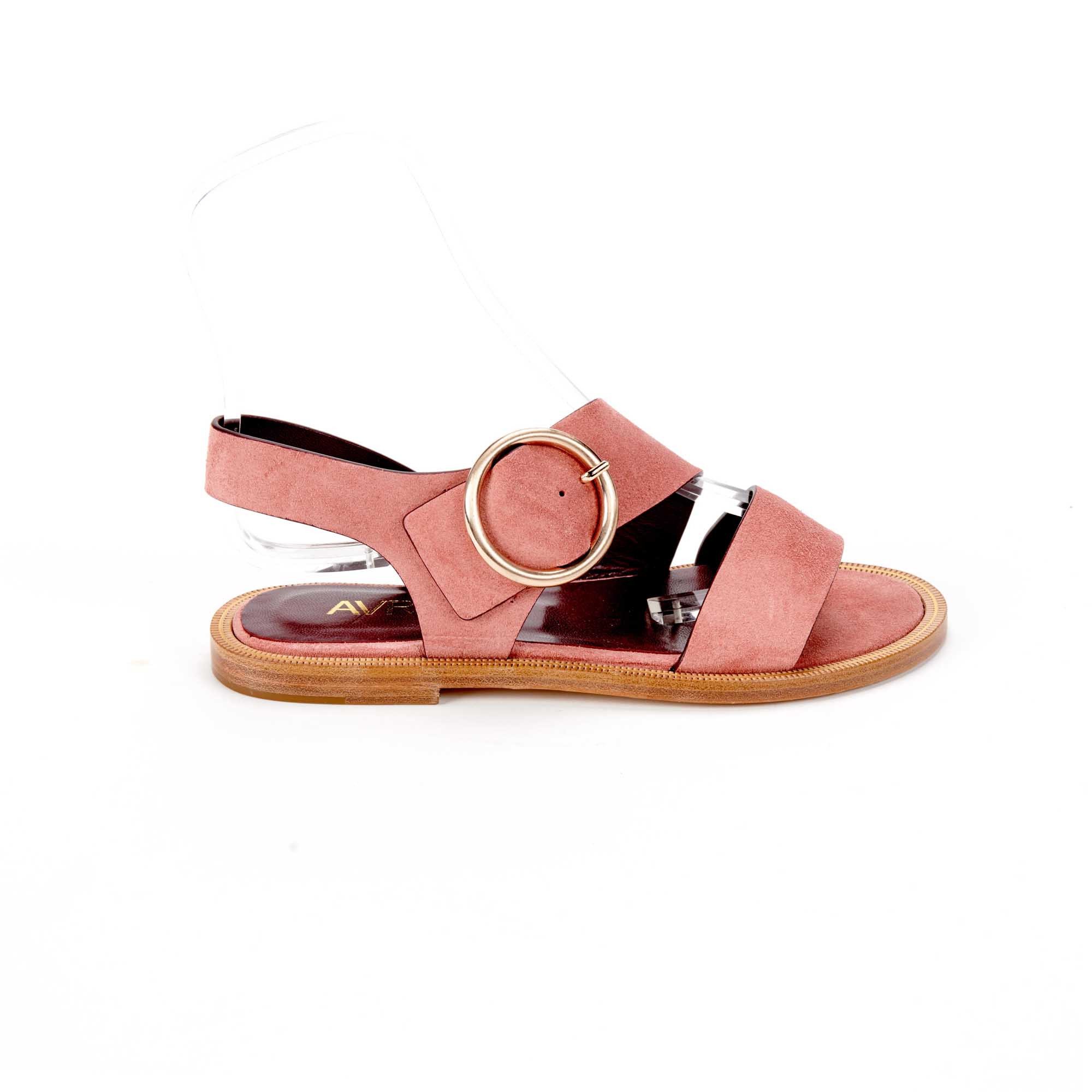 - Sandale croute de veau velours ROSE