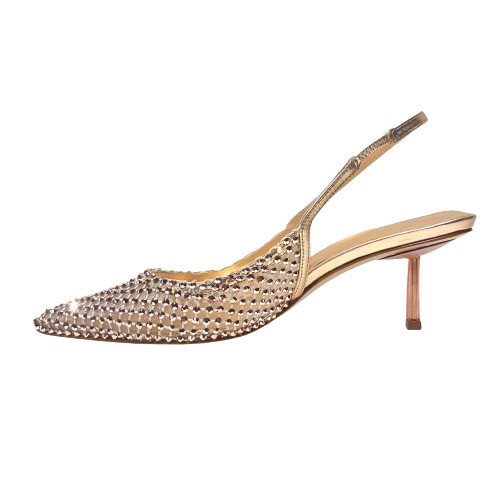 Explorez le monde captivant de la sandale GILDA. Cet escarpin avec une bride arrière est conçu avec une tige recouverte d'un bas en résille solide et des finitions en satin d'une teinte nude rosé. Délicat et polyvalent ce modèle irrésistible est agrémenté d'un talon aiguille de 65 mm et d'une silhouette effilée qui lui confèrent une allure encore plus glamour.