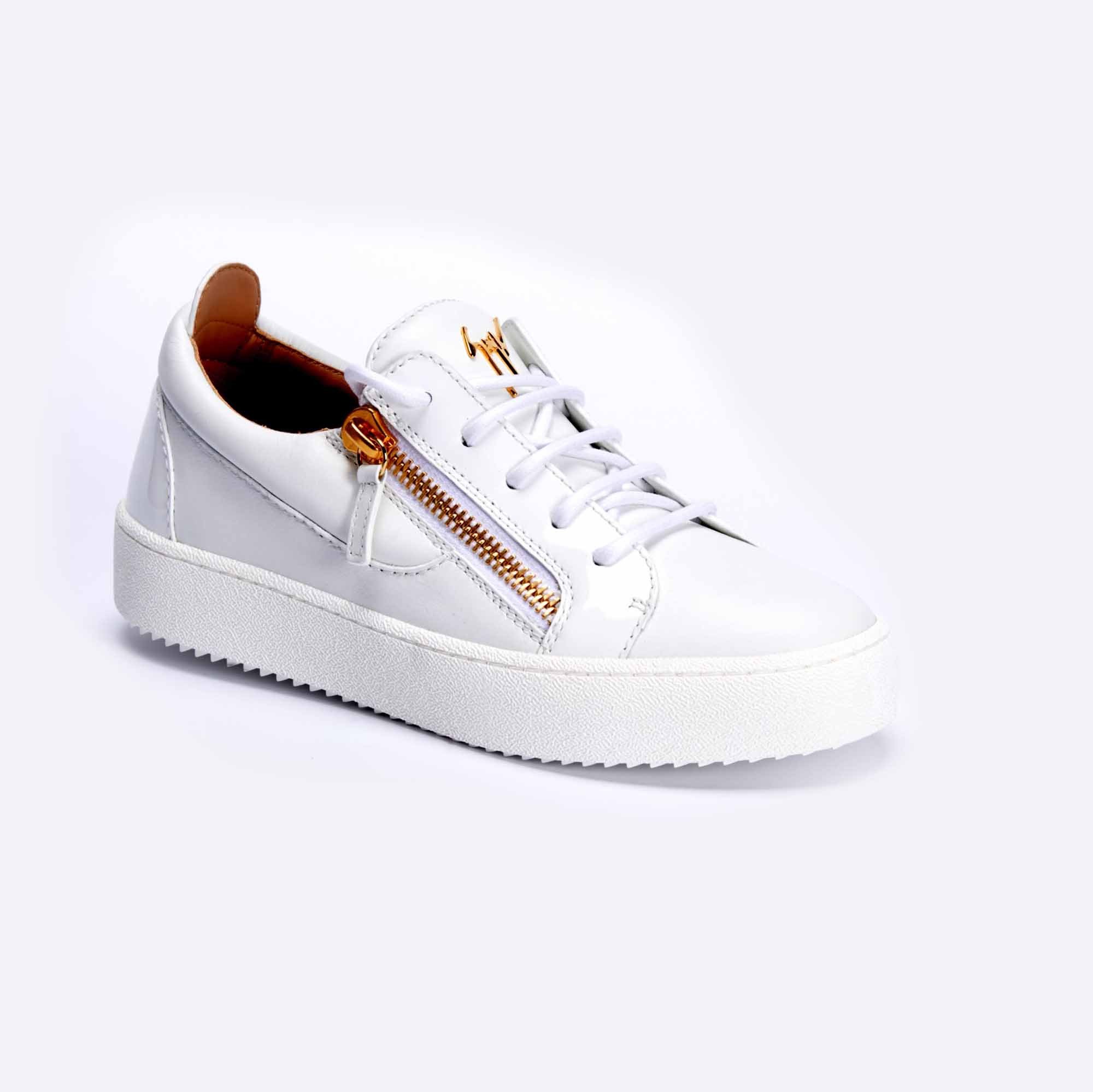 Adoptez cette sneaker intemporelle de Giuseppe Zanotti. Ces baskets May Blanches en cuir blanc sont parfaites pour toutes saisons. Portez-les avec une tenue élégante pour un côté casual-chic, ou bien avec toute tenue décontractée. Ces baskets sont dotées de 2 fermetures dorées de chaque côté du pied, signature Zanotti.