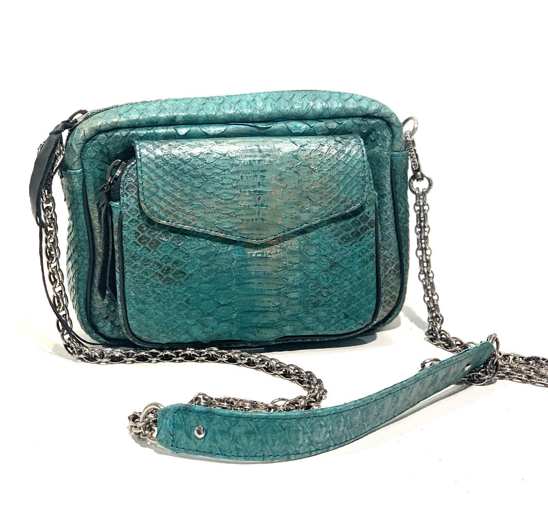 Accueil | Maroquinerie Sacs à Bandoulière CHARLY AQUA CLARIS VIROT CHARLY AQUA CLARIS VIROT #CLARIS VIROT 570,00 € CHARLY AQUA Ce sac porté épaule en python colori AQUA est muni d’une très belle chaîne amovible ARGENTE avec crochets qui lui donne un look tendance. colori AQUA Hauteur : 15 cm Longueur : 21 cm Largeur : 5 cm Composition : Python chaine or 130 cm 570,00 € Ce produit n'est pas en vente pour le moment